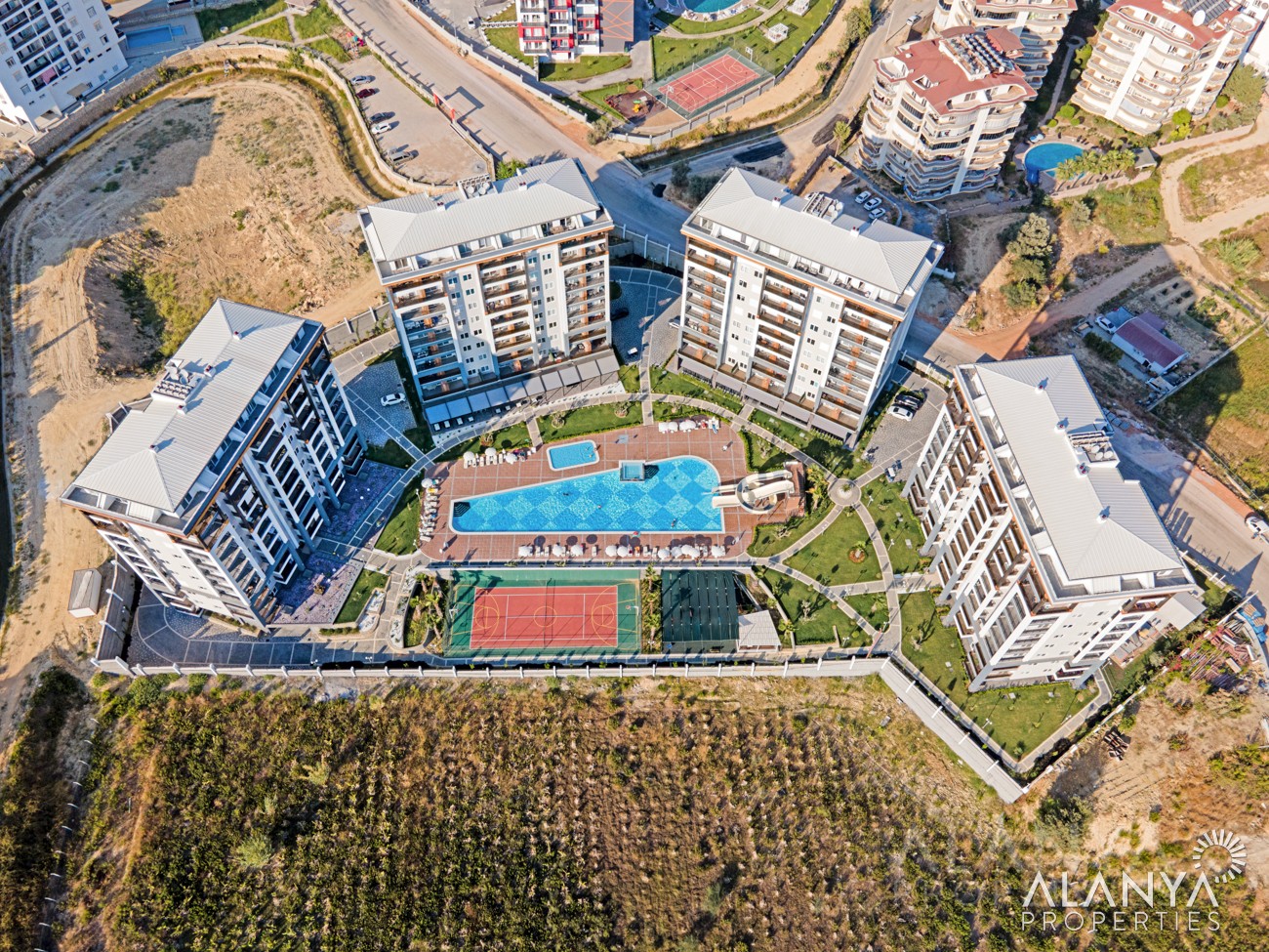 - Le nouveau complexe est en cours de construction sur un terrain de 13 000 m². Il se compose de 4 bâtiments avec un total de 234 appartements. Ce complexe 5* est synonyme de luxe et de haute et qualité.