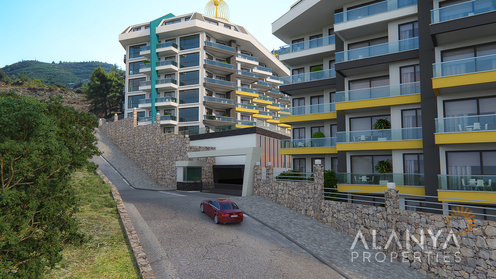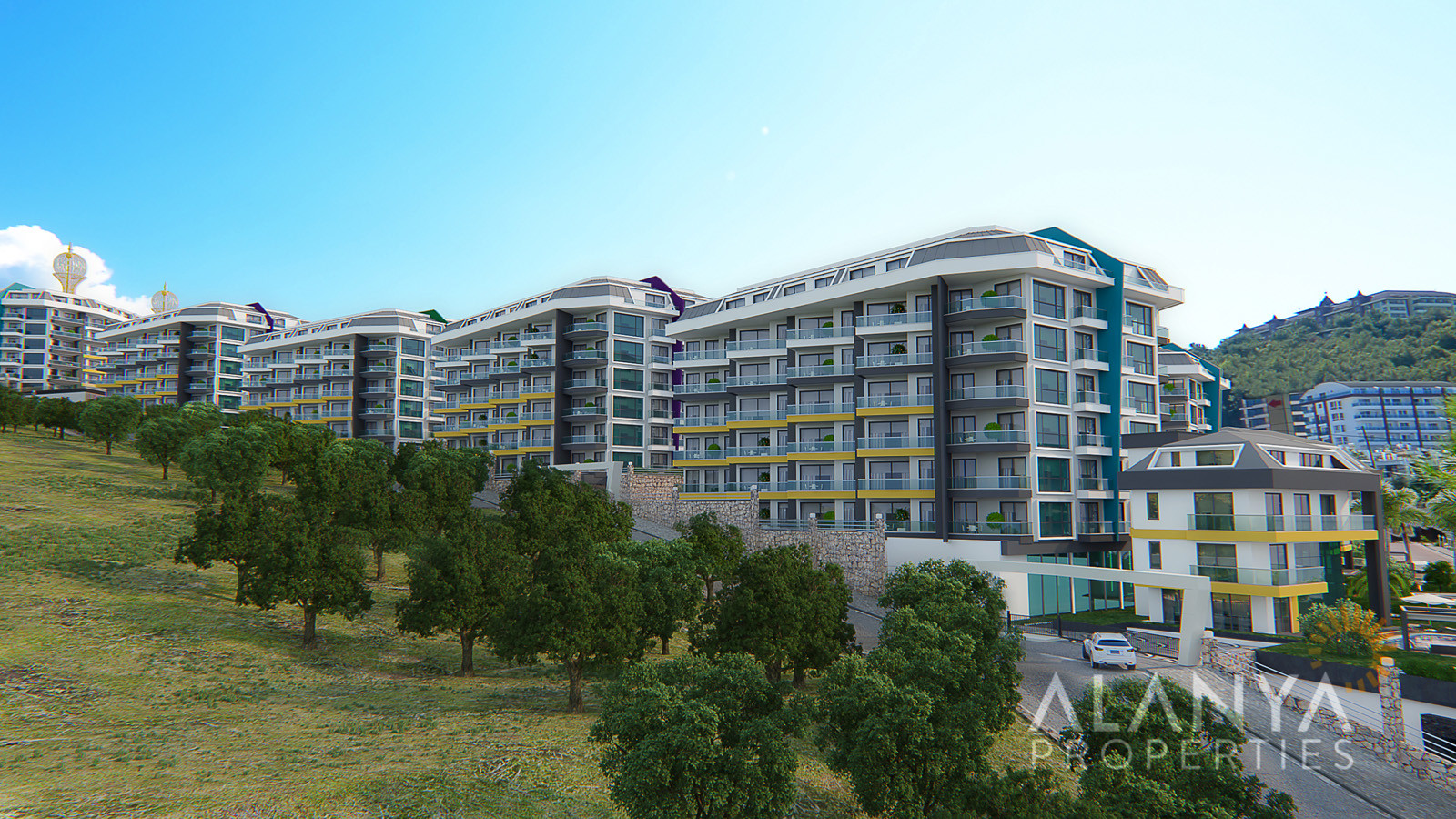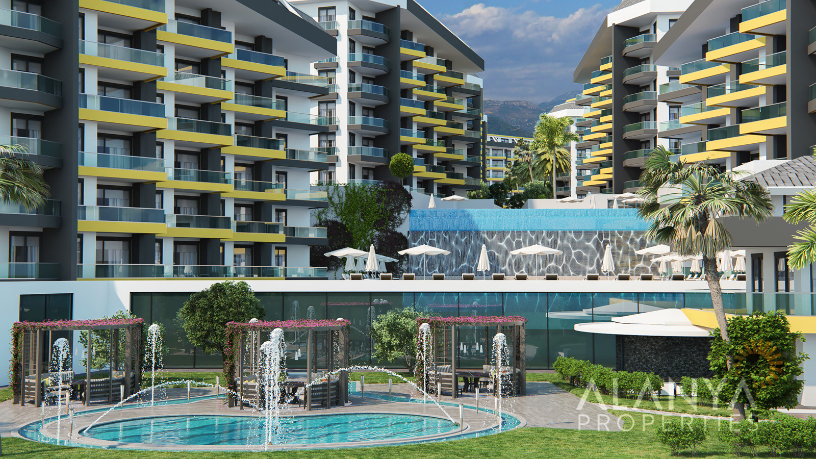 Appartements Vue Mer à Vendre à Kargicak/Alanya se trouvent à 50 m de la plage. Ce nouveau complexe se compose de 8 bâtiments avec un total de 450 appartements, 3 villas et un centre commercial.