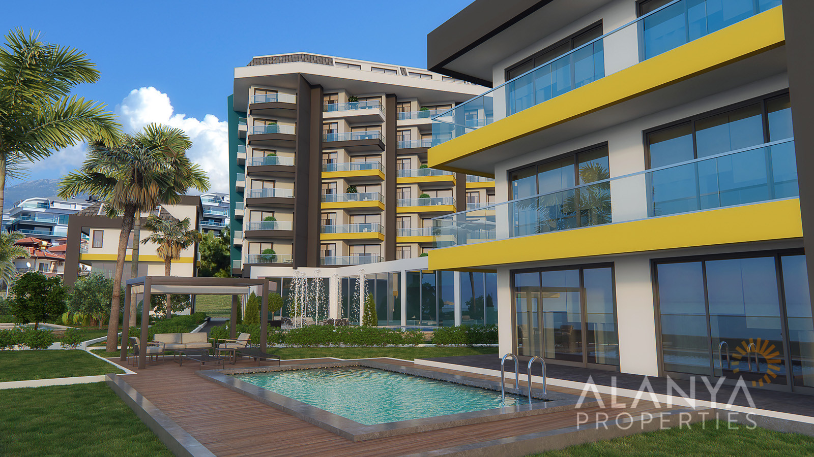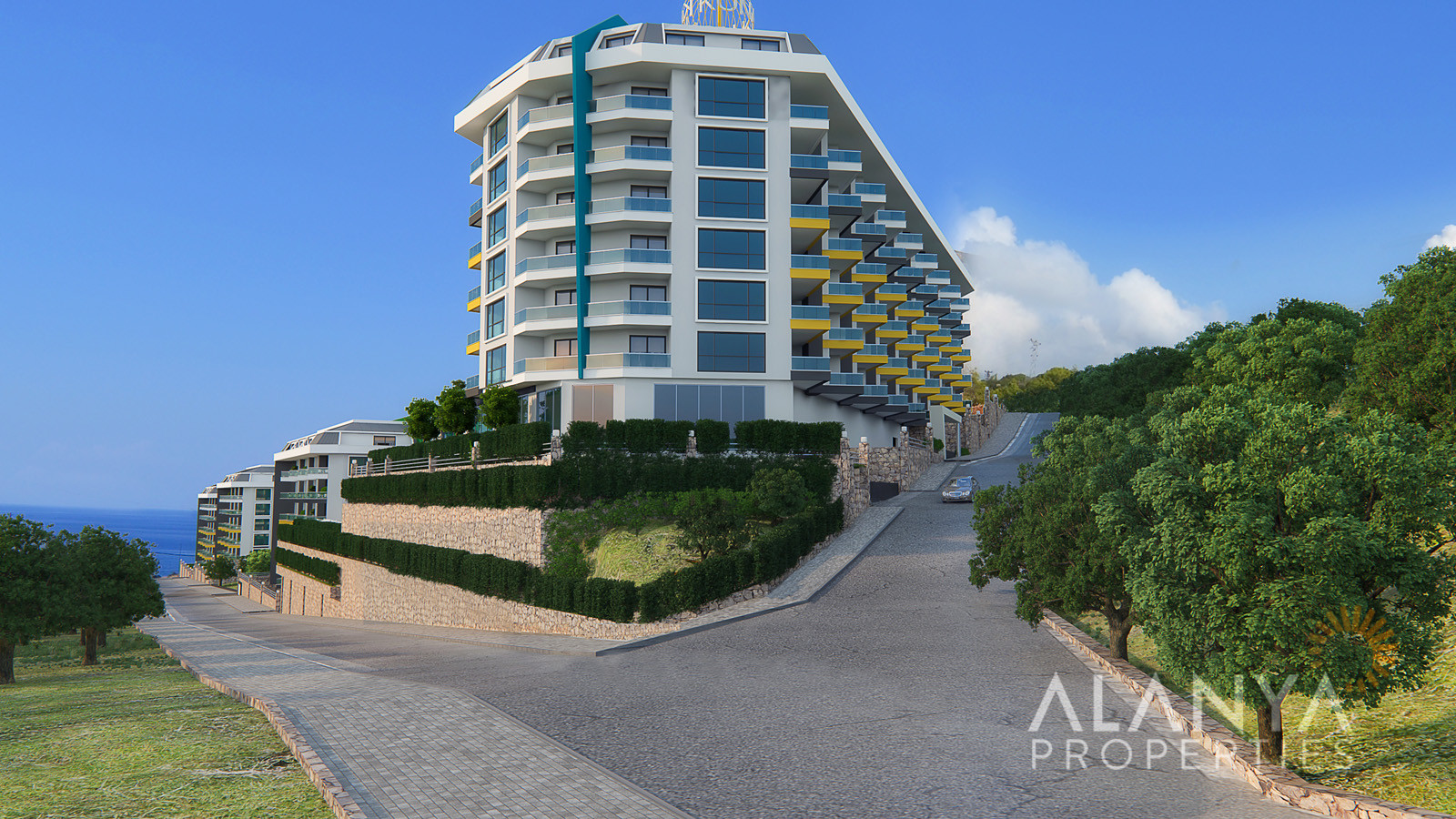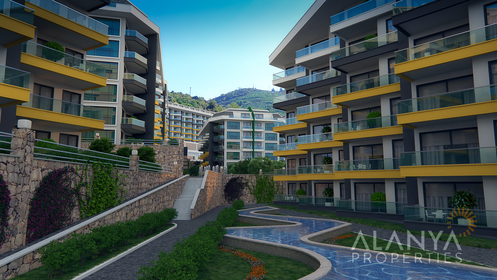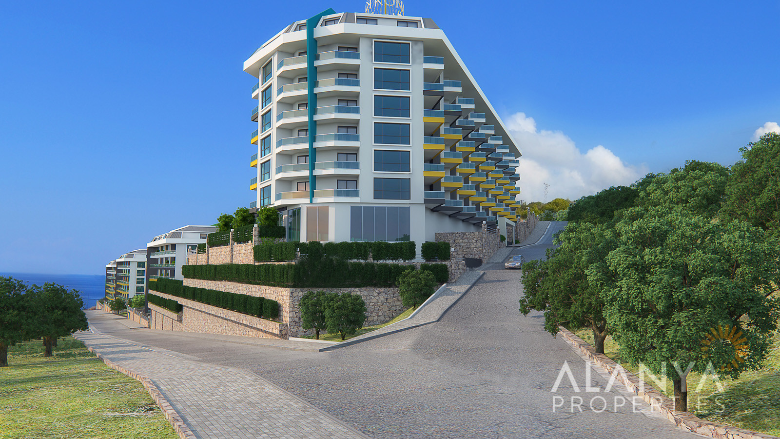 Appartements Vue Mer à Vendre à Kargicak/Alanya se trouvent à 50 m de la plage. Ce nouveau complexe se compose de 8 bâtiments avec un total de 450 appartements, 3 villas et un centre commercial.