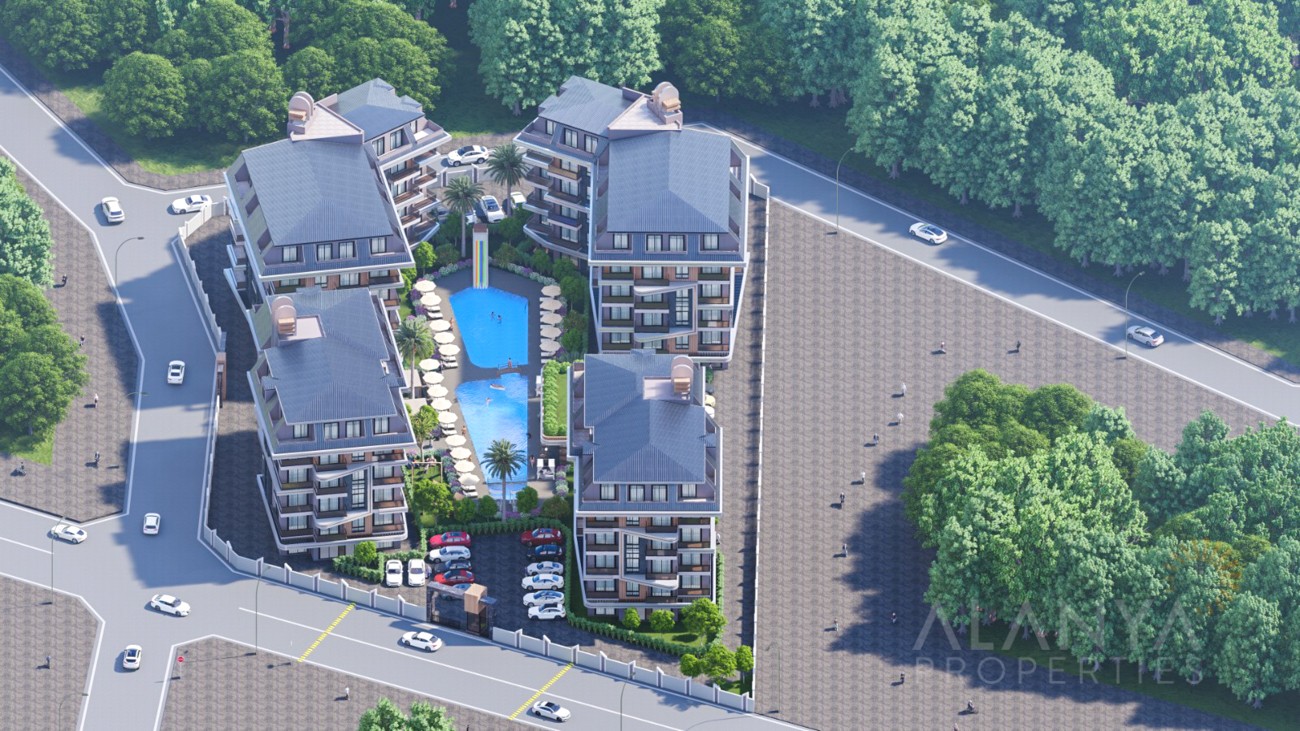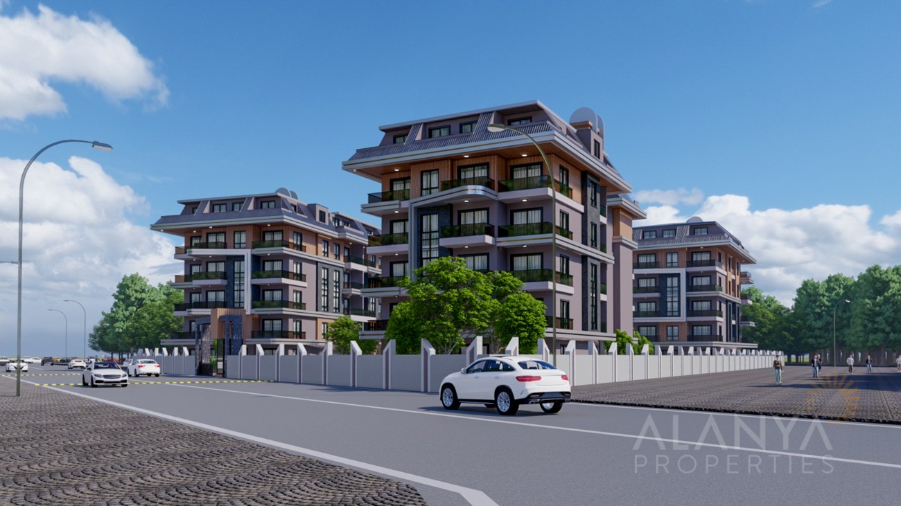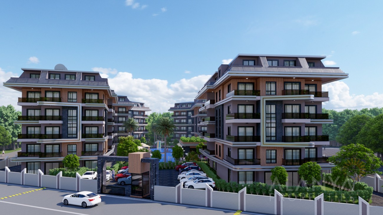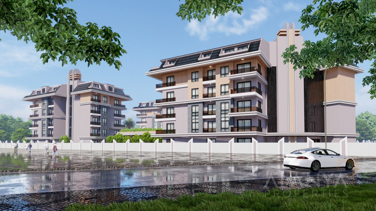 Nouveaux Appartements Élégants à Oba / Alanya entrelacés avec la nature colorée. L'arôme des vergers d'agrumes est un délice pour vos sens. Ce nouveau complexe, à 2,3 km de la mer, est construit sur un terrain de 6668 m² et se compose de 4 bâtiments de 5 étages et un total de 104 appartements.Tous les commerces pour vos besoins quotidiens sont accessibles à pied.