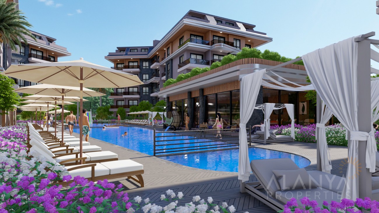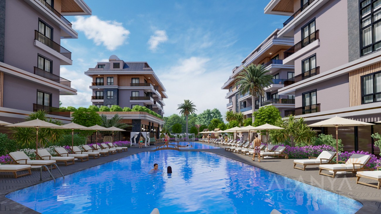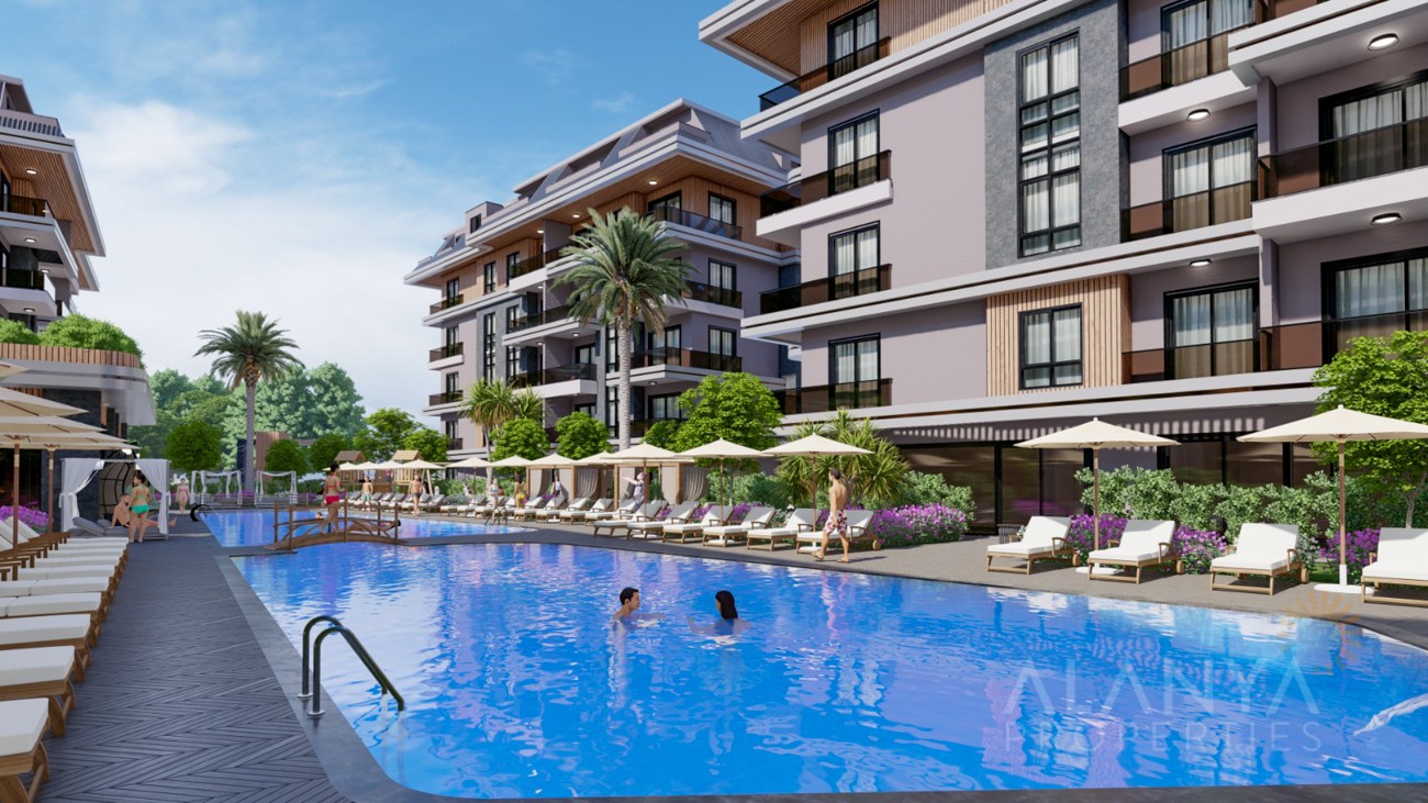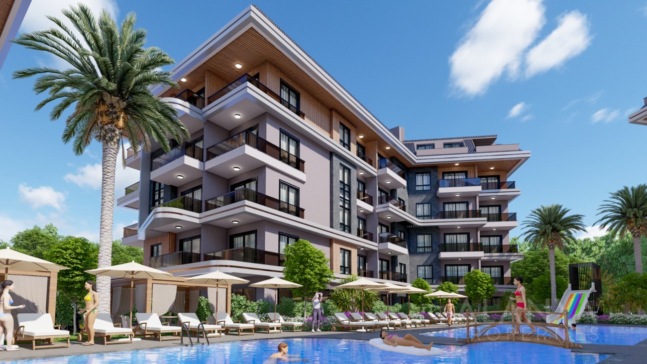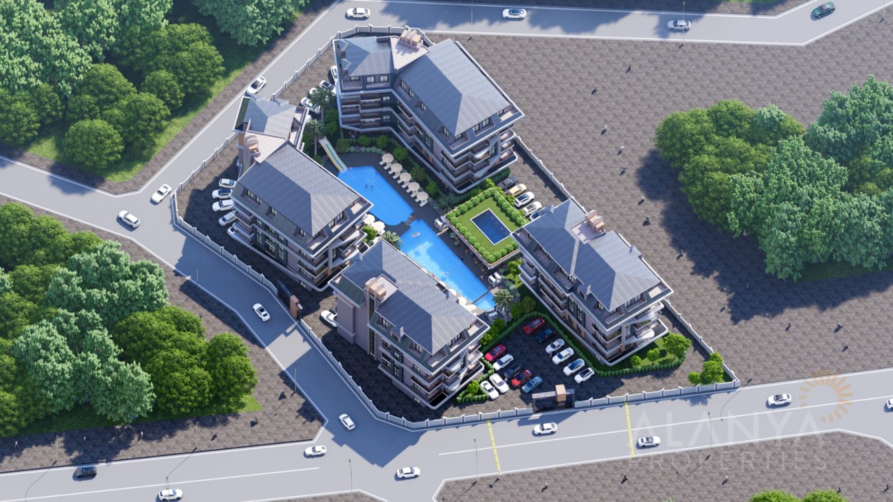Nouveaux Appartements Élégants à Oba / Alanya entrelacés avec la nature colorée. L'arôme des vergers d'agrumes est un délice pour vos sens. Ce nouveau complexe, à 2,3 km de la mer, est construit sur un terrain de 6668 m² et se compose de 4 bâtiments de 5 étages et un total de 104 appartements.Tous les commerces pour vos besoins quotidiens sont accessibles à pied.