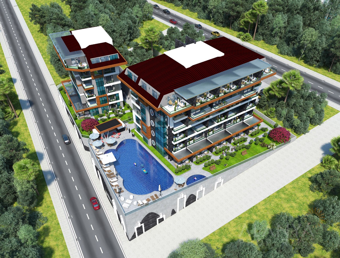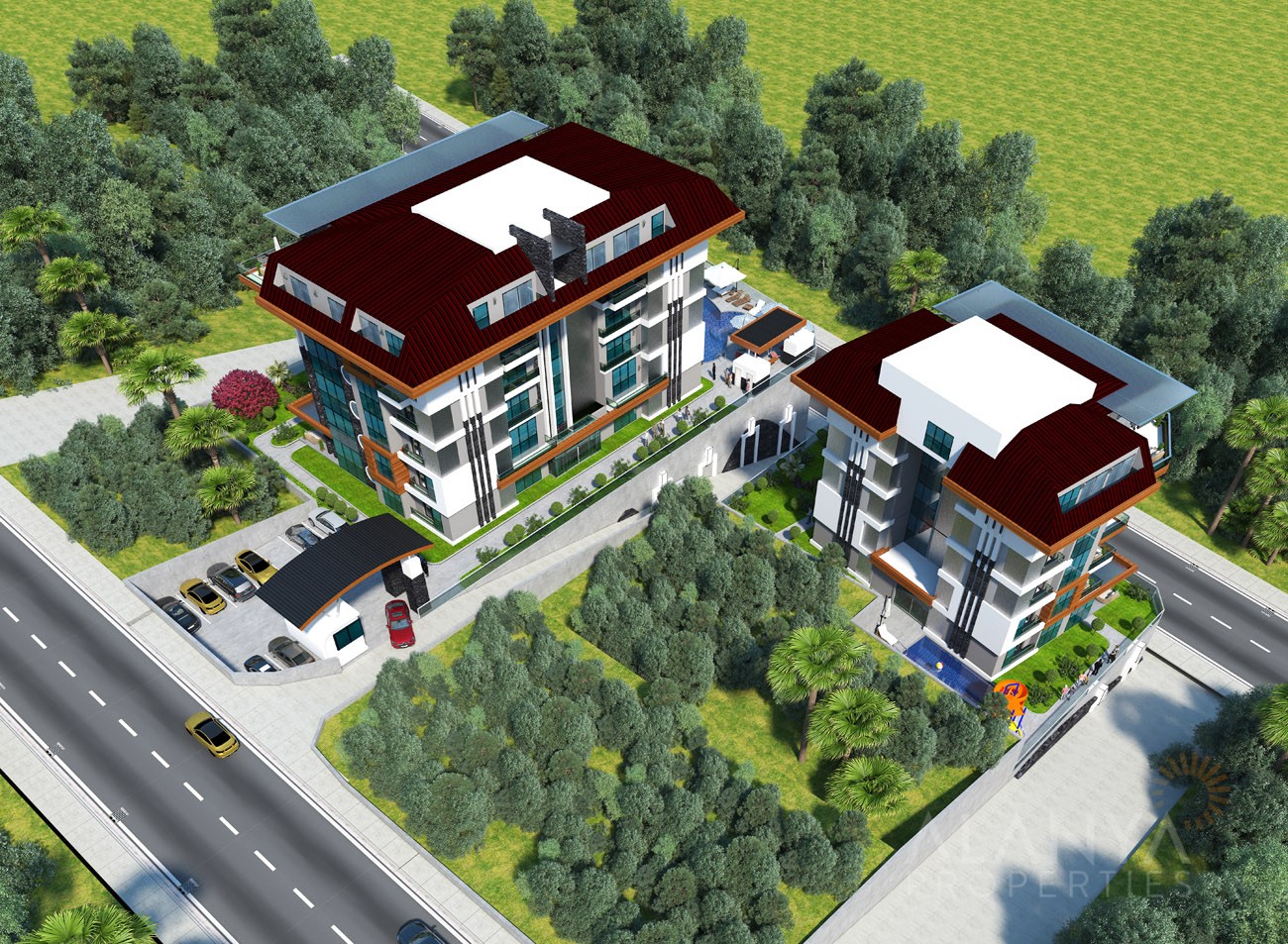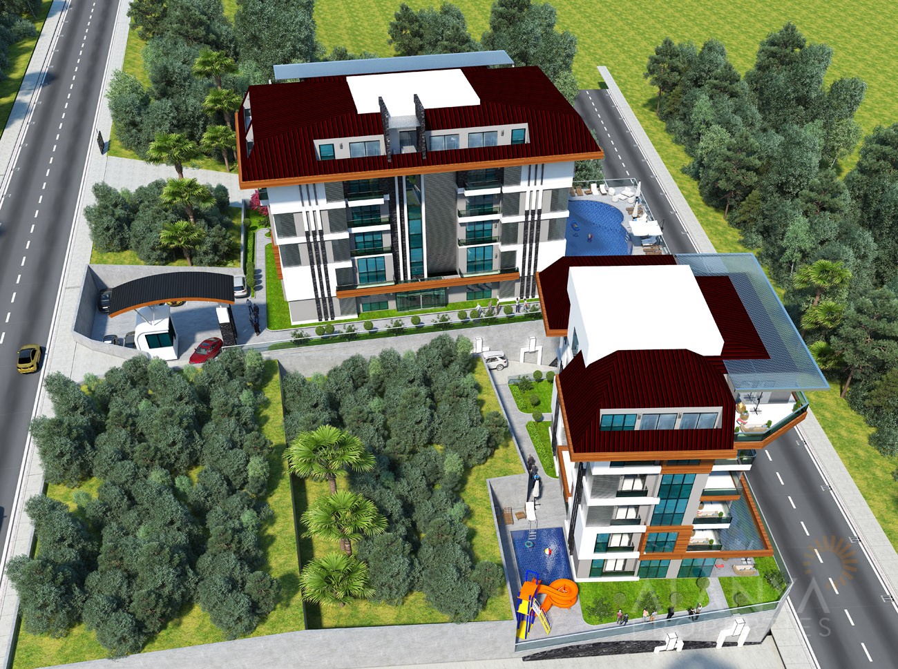 Dit exclusieve project heeft een ruime keuze aan gemeenschappelijke voorzieningen waar de bewoners van kunnen genieten. Buitenvoorzieningen zijn onder meer een groot zwembad, een afzonderlijk zwembad met glijbanen, een kinderzwembad en een buitenjacuzzi. Tot de overdekte voorzieningen behoren een verwarmd binnenzwembad, een Turks stoombad, een sauna, een stoombad en massageruimtes. Evenals een speel- en amusementsruimte en een uitgeruste fitnessruimte.