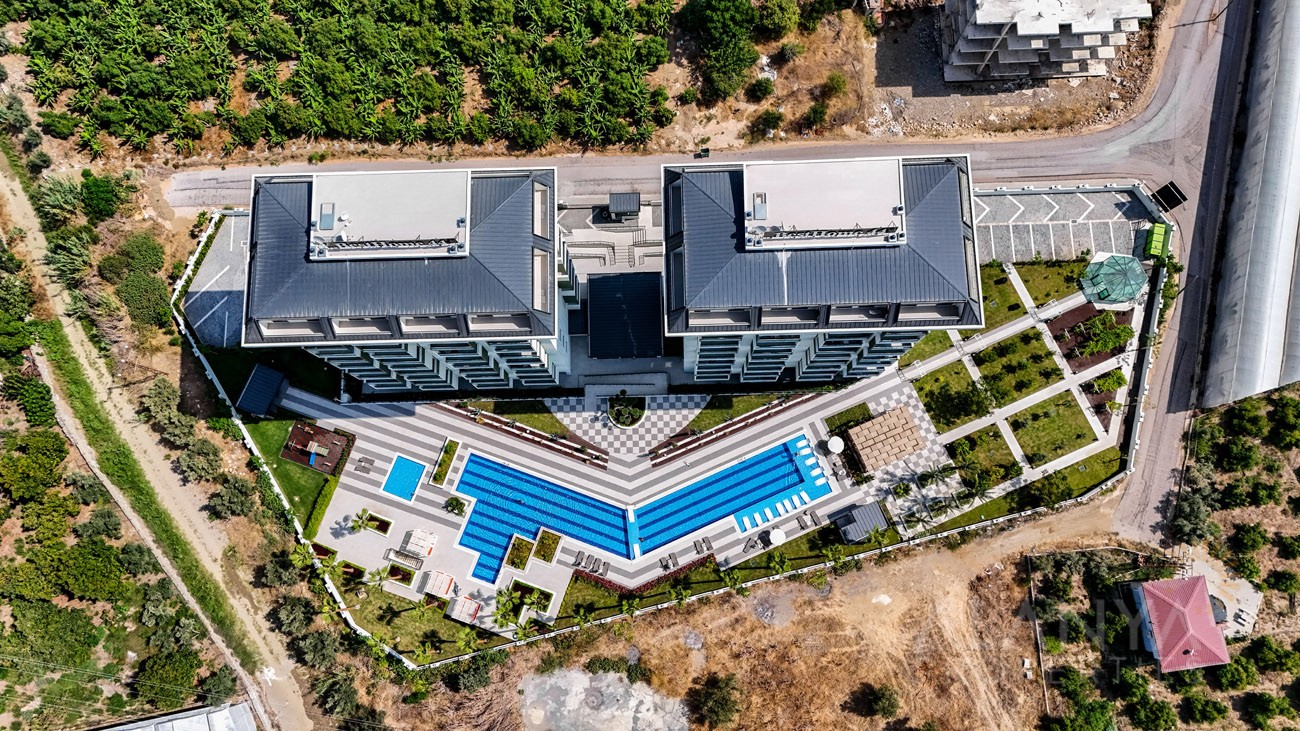 Dit Nieuw 2-Slaapkamer Duplex Appartement in Demirtas / Alanya is gelegen in een nieuwbouwproject op 1,2 km van de zee. Het gloednieuwe complex is gebouwd op een perceel van 5.678 m2 en bestaat uit twee gebouwen van 8 verdiepingen met in totaal 108 appartementen.