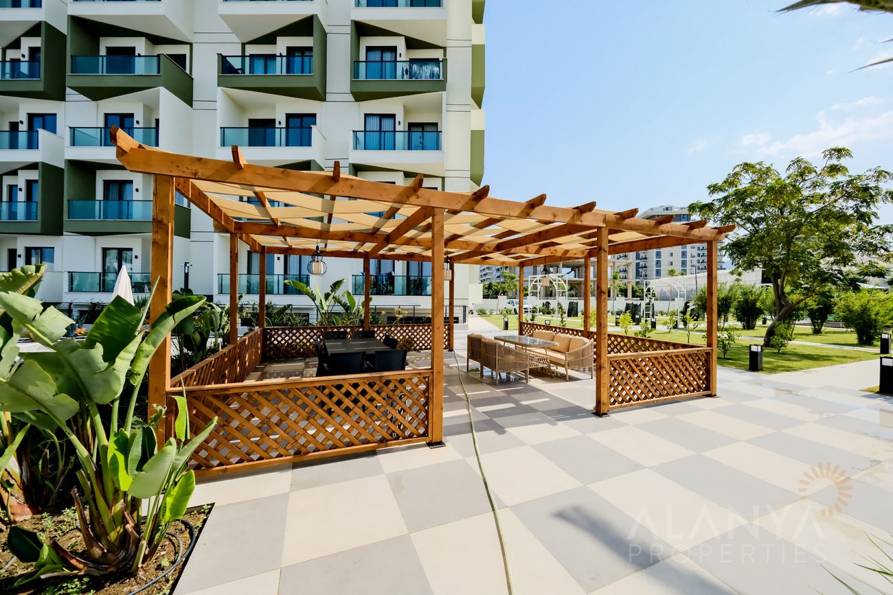- Dit geweldig complex ligt in Demirtas, op 1,3 km van het kleine stadscentrum, waar u winkelfaciliteiten kunt vinden die aan uw dagelijkse behoeften kunnen voldoen. Er zijn winkels met verse, op de boerderij geproduceerde groenten en fruit uit de omliggende gebieden. En op vrijdag is er op de wekelijkse markt met een ruim aanbod aan verse producten en textiel.